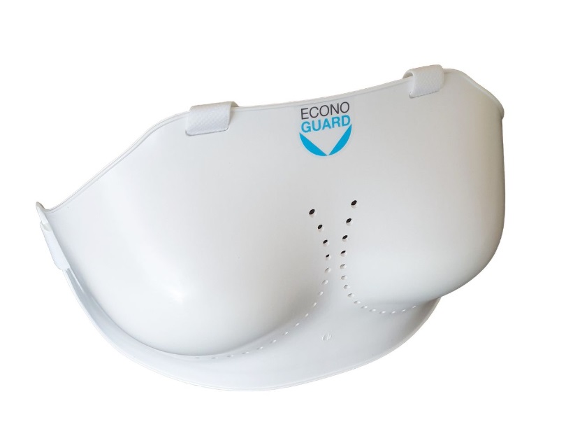 The Econoguard Female Chest Protector is a lightweight, flexible, and strong polyethylene shield designed to protect the breasts, ribs, and sternum during sports like fencing, martial arts, and boxing. It is CE-approved, features adjustable elastic straps, and is designed to be worn comfortably under or over a bra.